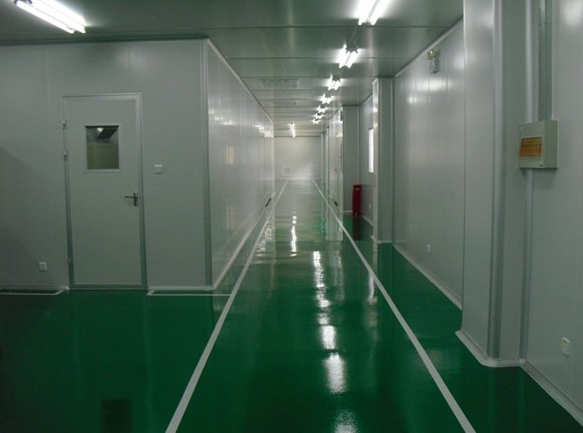 无尘车间的围护结构和室内装修材料宜选用气密性良好,同时在温度、湿度等变化时,本身变形小的材料;墙壁和顶棚表面应光洁平整、不起尘、耐腐蚀、耐冲击、易清洗。为了使无尘车间的建筑表面尽量少积灰、易清扫,应在建筑结构造上避免或减少凹凸面,墙面与地面、墙面与顶棚、墙面与墙面的相接处也不宜成一般的直角,宜做成半径大于或等于50mm的圆角。壁面涂层的色彩要和谐、雅致、素淡,以便于显现壁面上的污染物。同样,地面也应做到平整、无缝隙、耐磨、耐腐蚀、耐冲击、不积聚静电,宜除尘清洗。